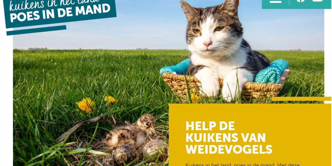 Met de slogan roepen verschillende natuurorganisaties en agrarische collectieven in Fryslân kattenbezitters op hun huisdier ’s nachts binnen te houden.