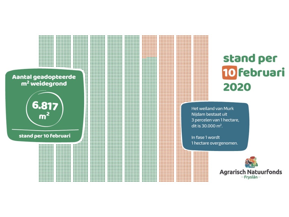 Op 10 februari hebben al meer dan 1650 sympathisanten 1 of meer m2 weidegrond bij Murk Nijdam geadopteerd.